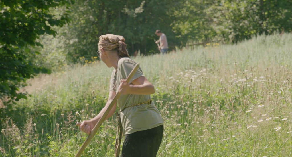 The film starts with a morning scene when we come to get some milk from Hanna and she says she doesn’t want to be filmed, and ends two years later with another milk scene when Hanna says that she likes us like a mother loves her sons even though we are not her children and she “didn’t breastfeed [us]”, and it was time for us to go home. And then we went up the hill to take the last shot of her from the hill and there came the fog, which resembled milk to me, inundating the meadow. The film follows a clear chronology. We started filming in 2019, which also marked a historic presidential election when Zelenskyy scored a landslide victory. And we finished filming in 2021, when the country was almost on the brink of the full-scale invasion and war. In a way, the meadow steeped in the fog in the last sequence also represents the future, the unknown future which lay ahead of us and which we didn’t know what to expect from.