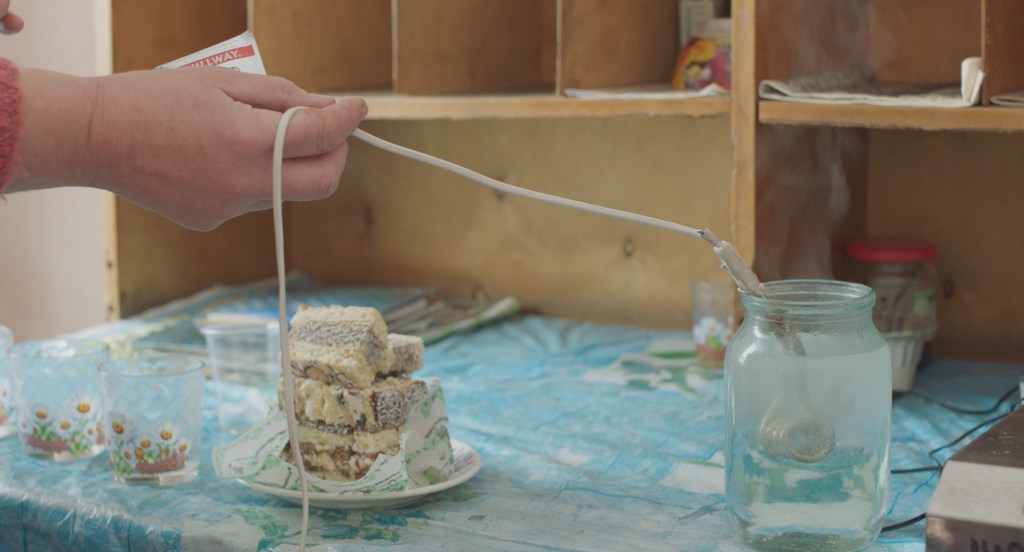 MM: At first I wanted to make a film without my presence in the frame. I think it’s a subconscious desire of a documentary filmmaker to become invisible, so to speak. There are films when there are no directors in the frame, but their presence is very much felt. I think the director can be in the frame, when their presence is legitimate. As we were making this film, at some point we realised that we cannot tell the story genuinely without showing our connection with the protagonists. Who is Hanna talking to all the time? She wants to talk to us. She wants to share her emotions, her thoughts, and her feelings with us. The biologist Nelya needed some support because nobody in the village really understood what she was occupied with and the significance of it. The postwoman Maria also appreciated some company while delivering pensions and carrying a bag of money. She once said, “Oh, I am not afraid of the bears; I am more afraid of the drunken men.”