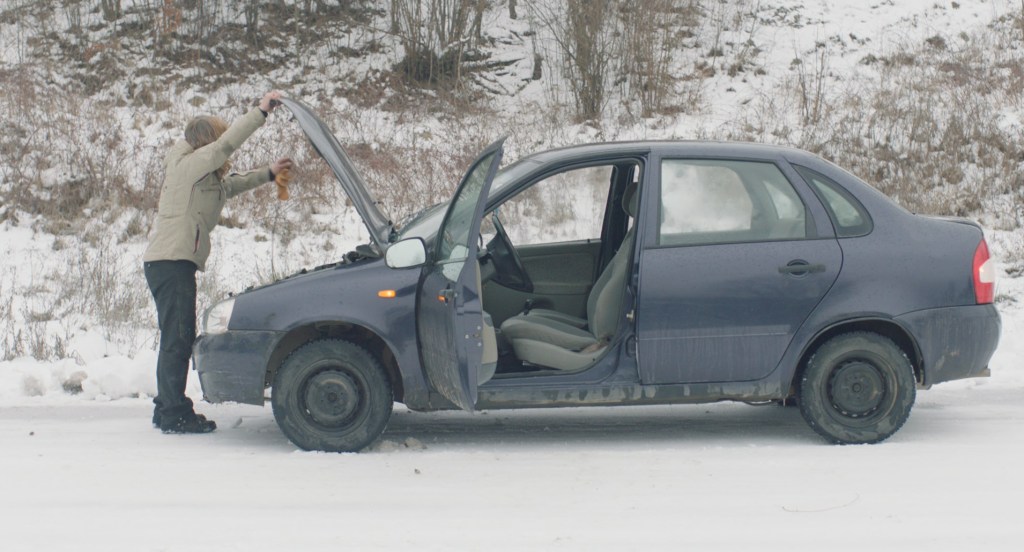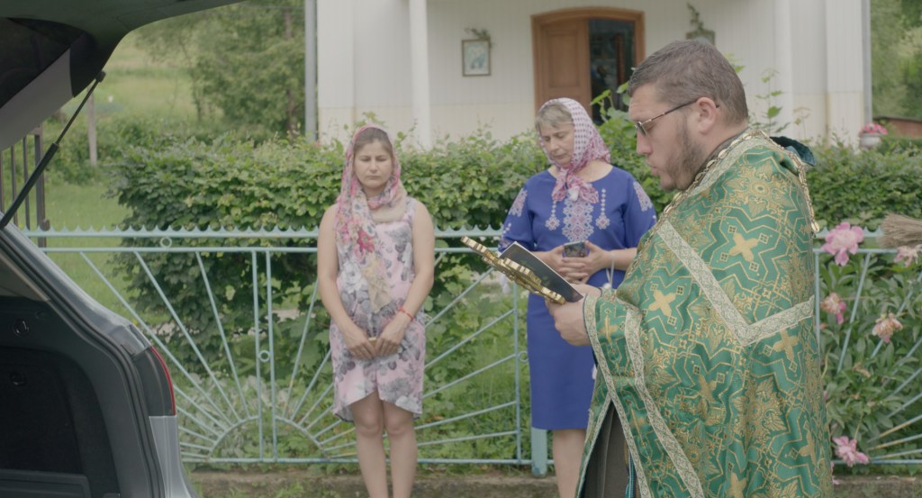 Three Women is quite a green film, as DoP Florian Baumgarten and I had no car when we were filming. We got around on foot, and it helped forming a bond with the protagonists because we would accompany people who were not getting to places by car. The village is quite elongated, stretching around 10 kilometres. Hanna lives on the one end of the village, and Maria on the other end of it, so at times it would take us a few hours to get from one point to another, and there was no car. Well, there was a car of the biologist Nelya, but more often than not it was out of order. When I met Nelya, the first thing that happened was her car broke down. And that car was not only her means of commuting but also her home in a way. Later in the film, we see Nelya, perhaps fatigued by her car constantly breaking down, bringing her car for a priest’s blessing.