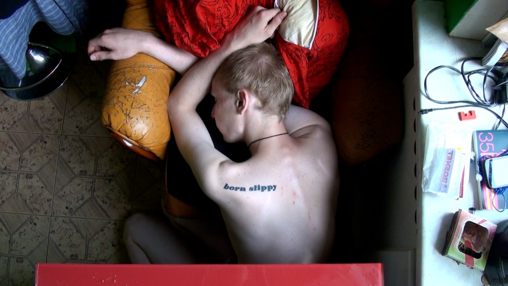 How do you keep someone who does his best to disappear? I wanted to be there for him, but the whole situation hurt me a lot as well. Then my camera provided me the distance I needed, making everything look not real. Maybe filming for me became the same as drugs became for Kimi—an escape from reality, from everything that didn’t work out for us. This experience made me think about the nature of film as a medium that captures time and keeps everything and everyone in one collective space. It reminded me of watching old wartime newsreel footage and realising that although these people died a long time ago, somehow, they are still here, alive in the footage. Was it maybe the way to save Kimi? Or maybe I could save him if he somehow becomes music? Maybe scanning Kimi’s body with the sonification app VOSIS and turning it into music is also a way of keeping him and letting him stay for as long as possible. In the end, music and his poems are is what left of him.