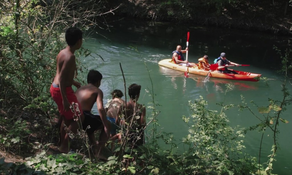 The film’s title, which is obviously borrowed from Stevenson, was obvious for me for several reasons. Treasure Island, the book, is effectively a quest, a tale of learning, and the story of a mutiny, the challenging of authority. It was quite unsettling for me, when we were half way through editing, to note that there were hidden similarities between all the accounts, all the characters that the film “accepted to keep”. The relationship to childhood of course, we said that. But also to freedom, authority, insubordination, transgression, which are omnipresent even in what Bayo, the night watchman has to say, his story that tells of his cry of revolt, his freedom of speech and insolence that cost him so much. Progressively, almost subconsciously, this rapport to freedom and rules became the core element of the film. To start with, I had considered this place as a place where freedom reigned. But I very quickly realised that even there, there were a multitude of things that were forbidden, and rules, and that this leisure base was in fact modelled on our society. When we started shooting, I effectively had a rather teenage rapport to this idea of rules, which naturally pushed me to be on the side of the scammers, and put me a little at odds with the base’s management – who were luckily very kind and considerate! What should be a place of freedom isn’t, but could things be any different? Yet, it’s was not forbidden to laugh about it. There’s something quite amusing and a bit absurd in this little game of cat and mouse played out day by day by the youngsters and security guards – who often did the same naughty tricks a few years before – around the strategic spots represented by the beach, where you have to pay to go in, and the bridge…