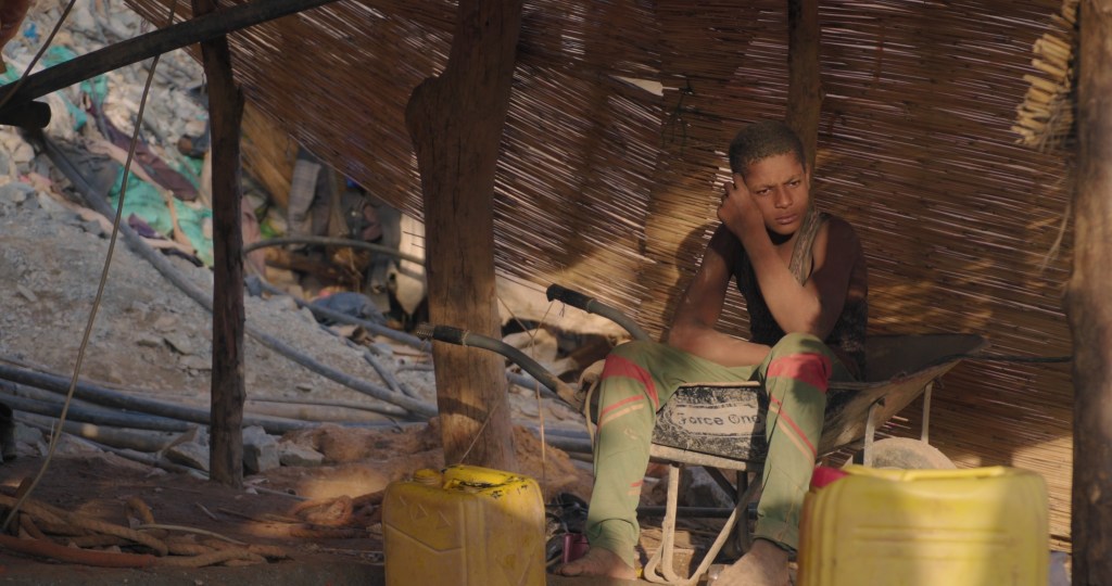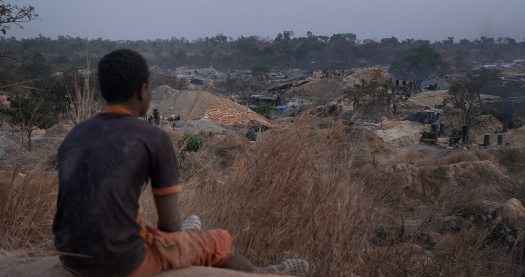 Around the galleries, still shots capture the daily life of this playful and dreamy character. Little by little, the wide opening on the site reveals the similarities that characterise the gold miners in their dreams and work. Just like the nature that surrounds them, innocence and dreams crumble before the unfolding ordeals. The duality between the yaar and the gallery is matched by that of the depths of the gallery and the outside of the site, to translate the effects of capitalism that confront the exploited and the exploiter, as in the sequence where Bolo’s team worries about being chased out by the prospecting “white man’s machine”.
