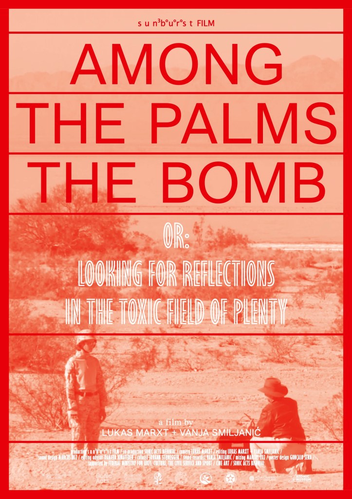 AMONG THE PALMS THE BOMB has local experts explain the landscape and history, and the director is looking for dissenting voices, especially among the tribe of the Torres Martinez Desert Cahuilla Indians, who were victims of genocide in the 19th century. Their survivors now recall how many plants that had healing powers and were part of a life with nature once grew around the salty water of the Salton Sea. Now the area belongs to the salt bushes, and beneath the surface ticks the uranium of a Cold War that is about to return. Scary times, someone says. (Bert Rebhandl)
